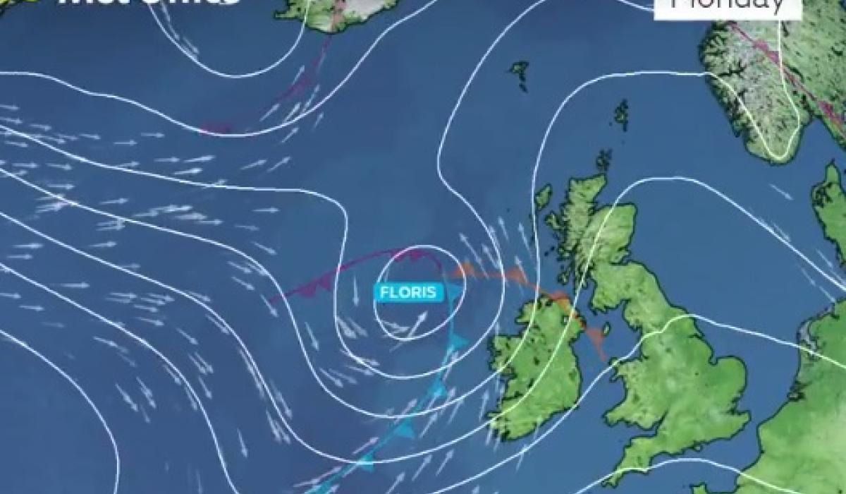 "The UK Met Office have named Storm Floris for the storm to hit Monday (August 4). The worst of it will stay north of Ireland based on current track but still bring us wet and unseasonably windy weather," said the Met Office on Friday morning, August 1. MORE BELOW X POST.