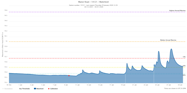 "In Portarlington and Mountmellick, the risk of flooding increases as water levels exceed the Median Annual Maxima Level. The Graph Reference Numbers, on waterlevels.ie, are 14005 (Portarlington) and 14121 (Mountmellick) (see graphs below)."
