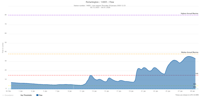 The council cautioned: "Property owners in other areas vulnerable to flooding, including areas of Portarlington and Mountmellick, can monitor river levels on waterlevel.ie.