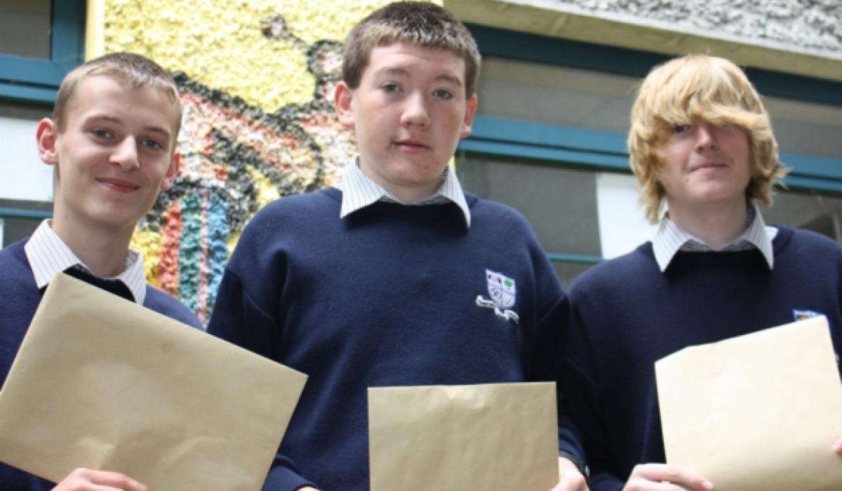 Cathal Grennan, Aidan Moore and Andrew Guerin with their Junior Cert results at Mountmellick Community School.