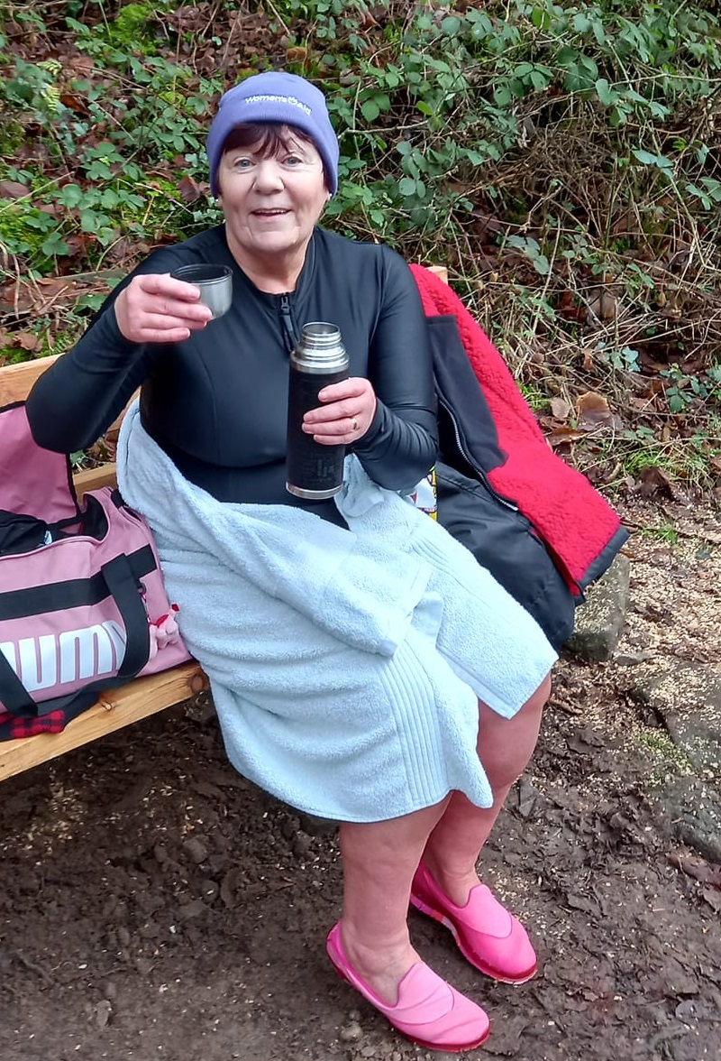 Linda Kehoe Dunne from Mountmellick, originally Athy, jumped into a freezing mountain river, in aid of Women's Aid.