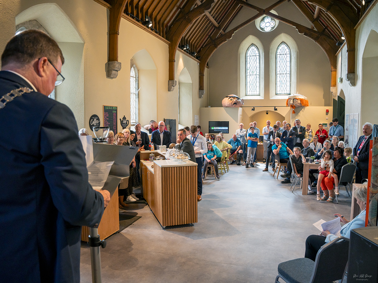 Mr Lynch, spoke on belhalf of the Committee. He said the centre was the culmination of a lot of work over many by many people and organisations. He noted the value of the Town and Village renewal grant, which allowed us to put the finishing touches to a restoration and enhancement project, which has taken over 30 years to complete.