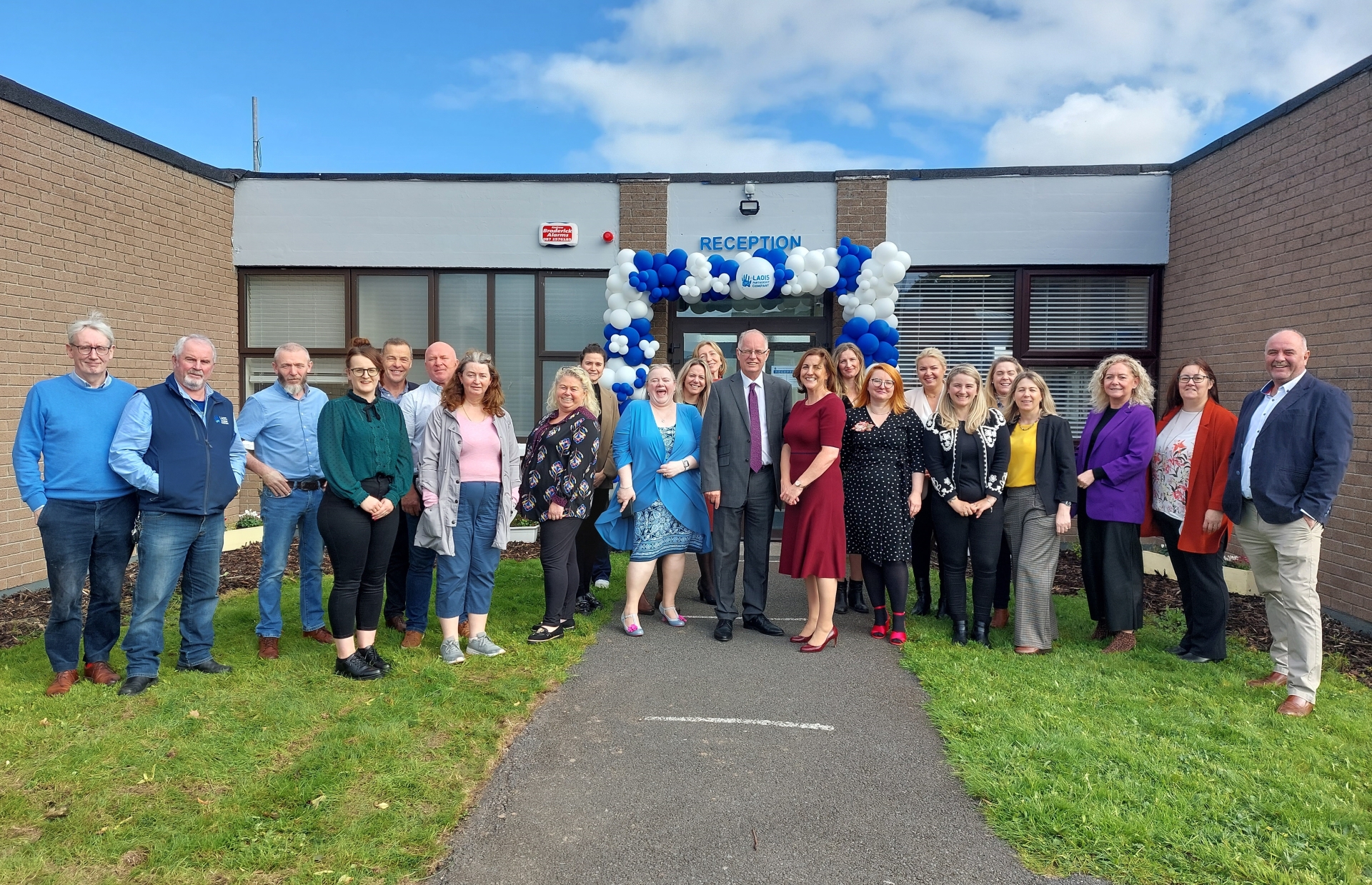 Laois Partnership Company Chairman Peter O'Neill and CEO Caroline Lydon with staff at the official opening.