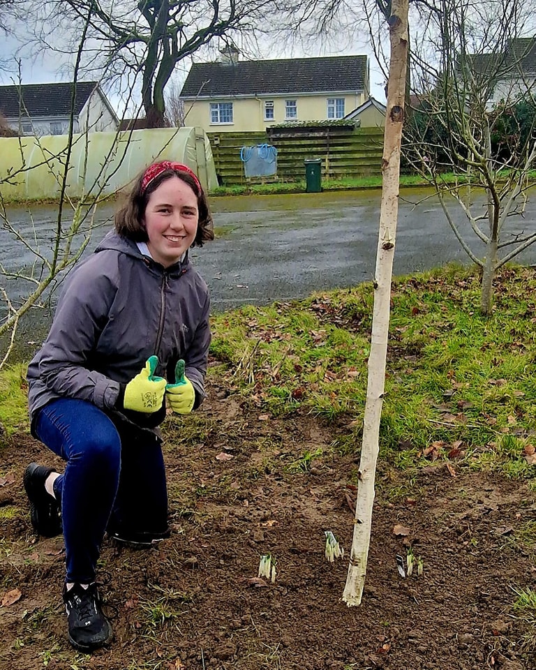 They planted a native Irish Silver Birch tree and added crocuses around it, they each decorated paper butterflies, read a Butterfly Poem and ended the commemoration with singing, helped by Laois Music Generation musician Terry Byrne.