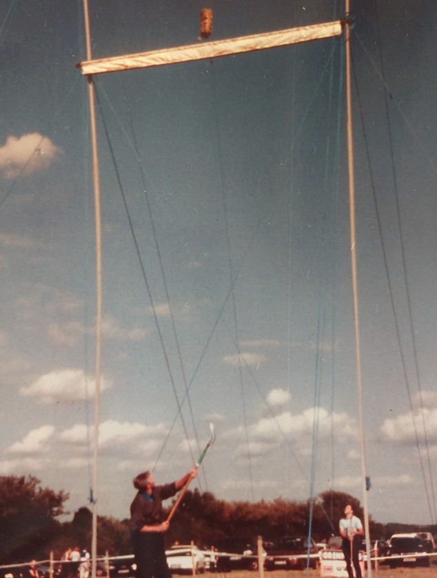 Dan also took part in the weight tossing event on the day. The picture below shows him throwing the winning toss over the 24 foot high bar. MORE BELOW PICTURE.