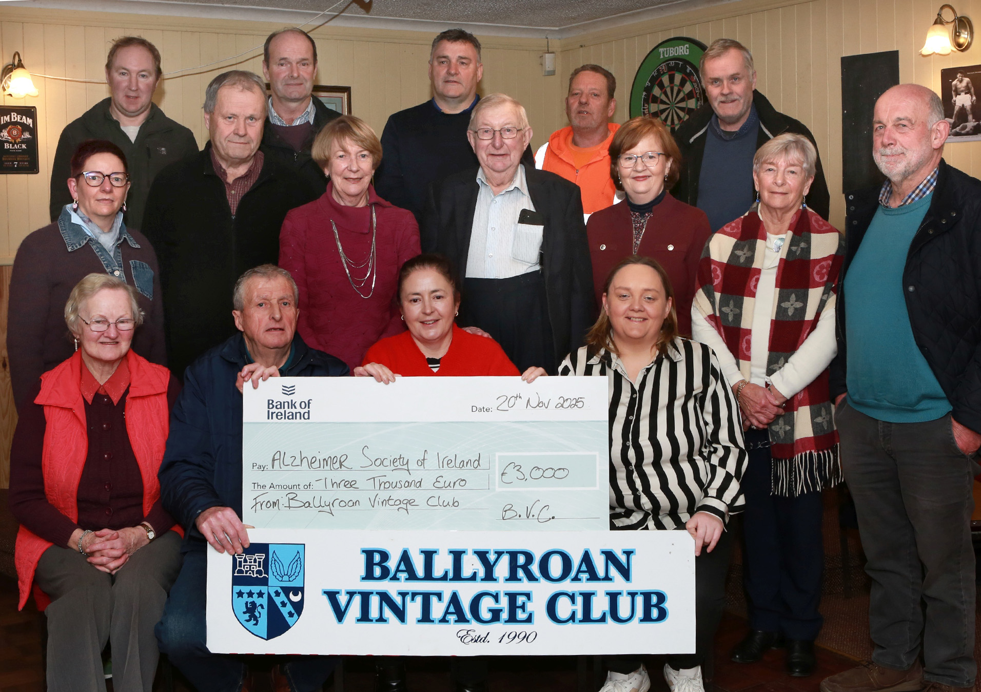 In November in Delaney's Lounge, Ballyroan, the committee held a presentation evening, handing over a handsome €3,000 each from the 2024 run to both charities, with the delay down to gathering all concerned at a suitable day for everyone.