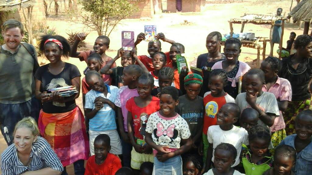 Cathal and Basia O'Connor delivering school books from Clonaslee Primary School to a homework club in Zambia in 2017.