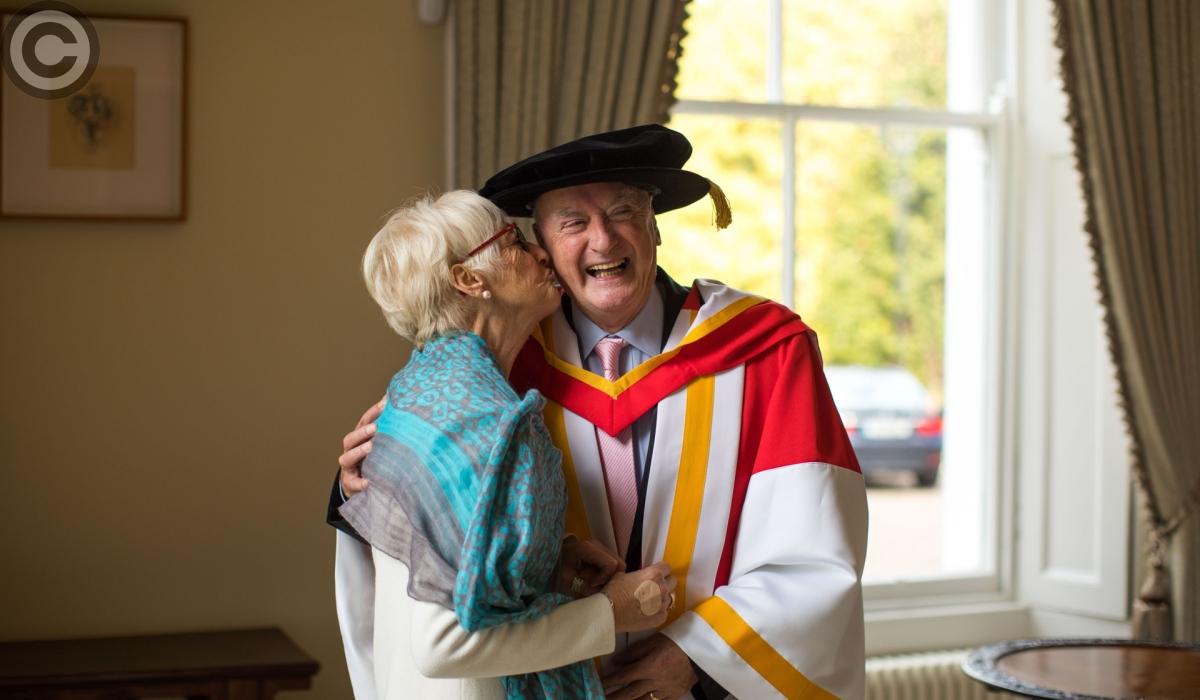 Roscrea native George Cunningham who has helped libraries in Laois and other counties as been bestowed with a Honorary Doctorate by the University of Limerick.