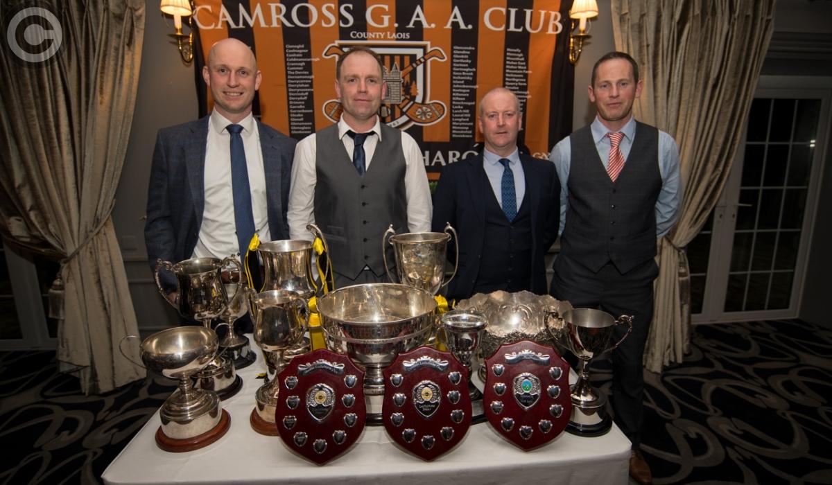 Pictured with the collected silverware from the 2017 season were Camross G.A.A Management Stephen Mortimer, Arien Delaney, Brendan Lowry and Damien Keenan.