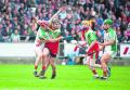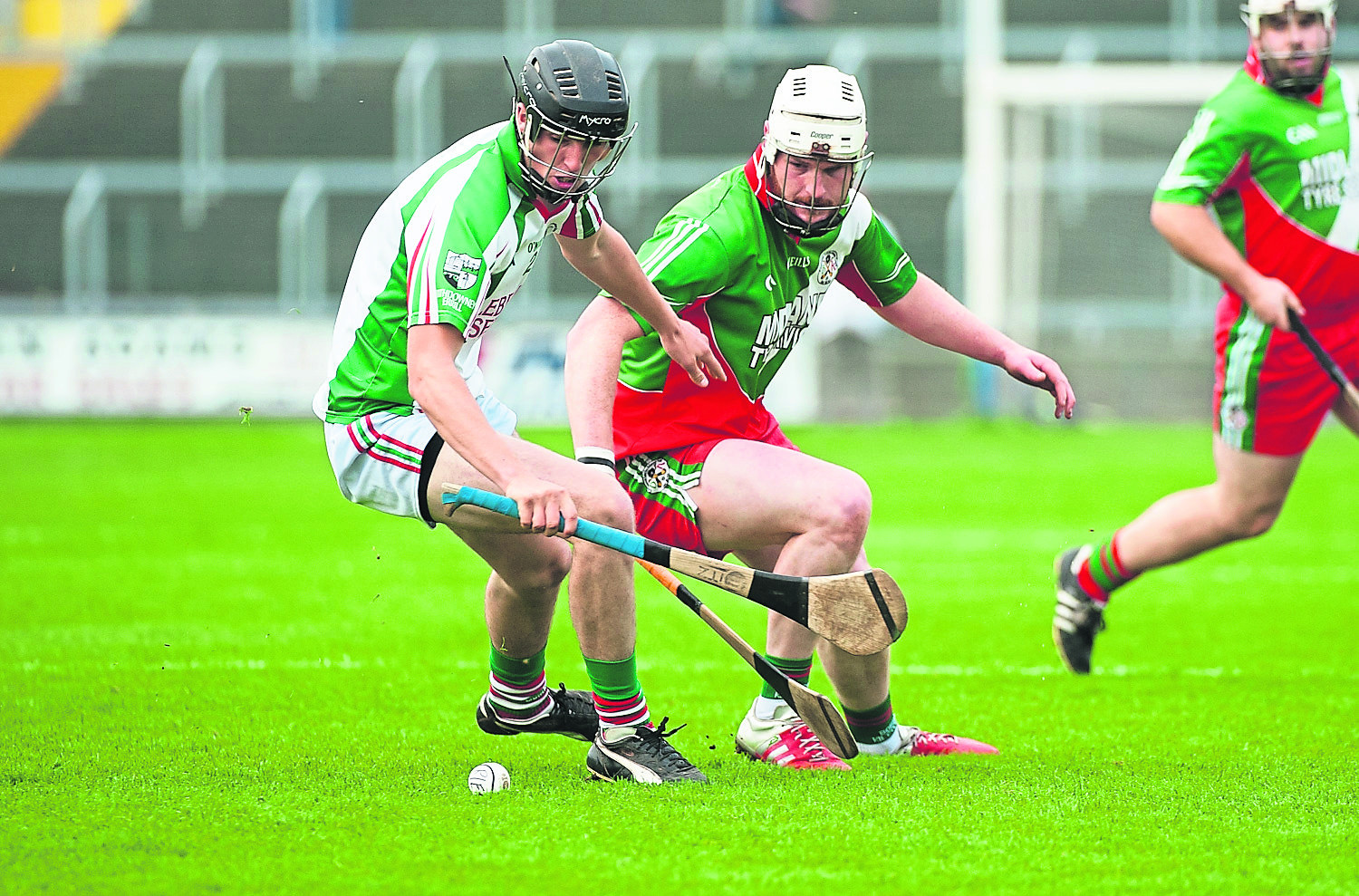 Joe Fitzpatrick, Rathdowney Errill breaks against Borris Kilcotton.