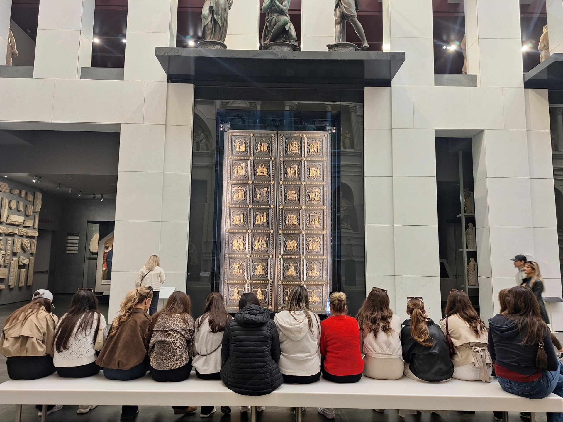 Pictured: The class admire the 'Gates of Paradise' at the Opera del Duomo Museum