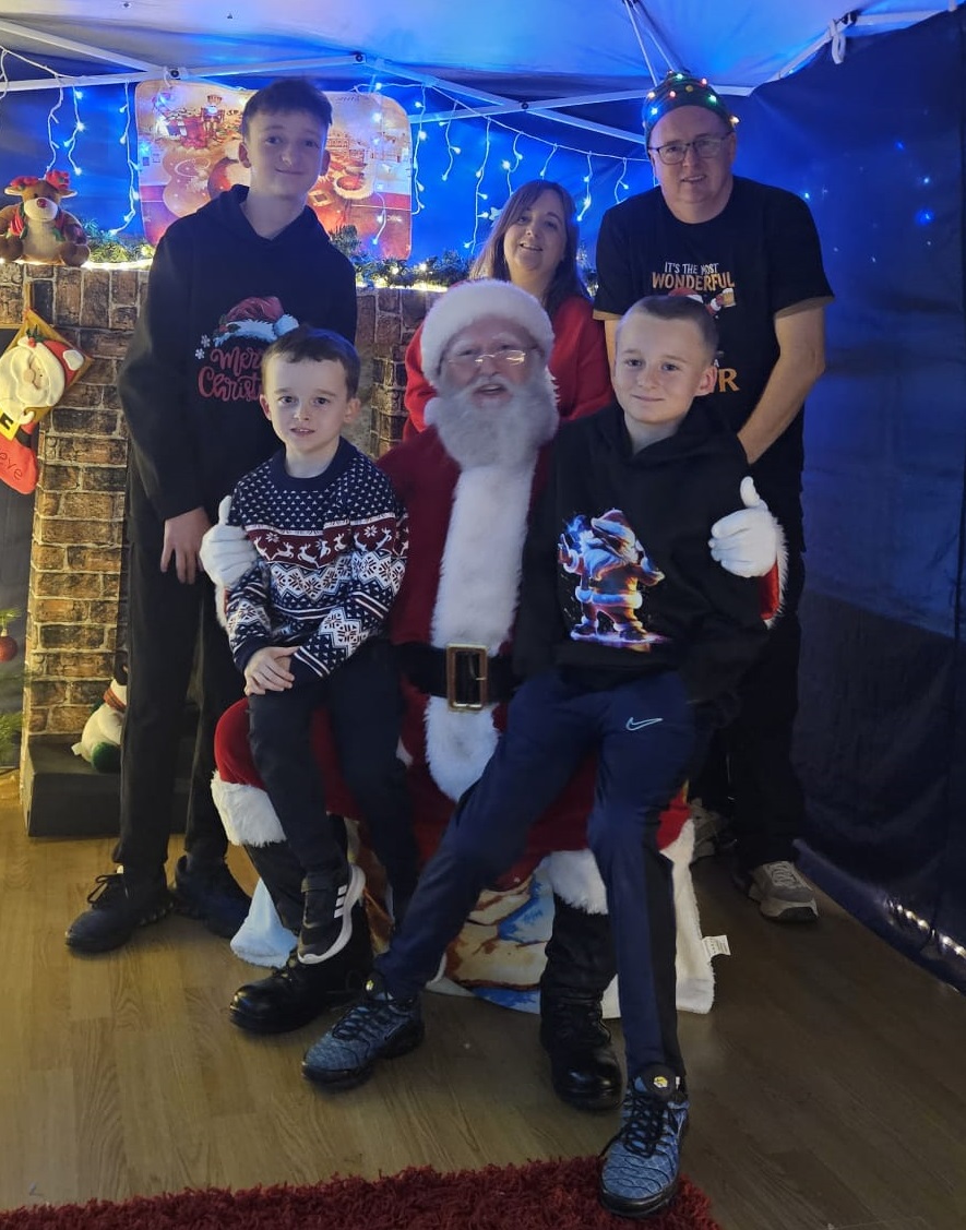 Anthony, Fiona, Jamie, Darragh and Ciaran Johnston meet Santa.