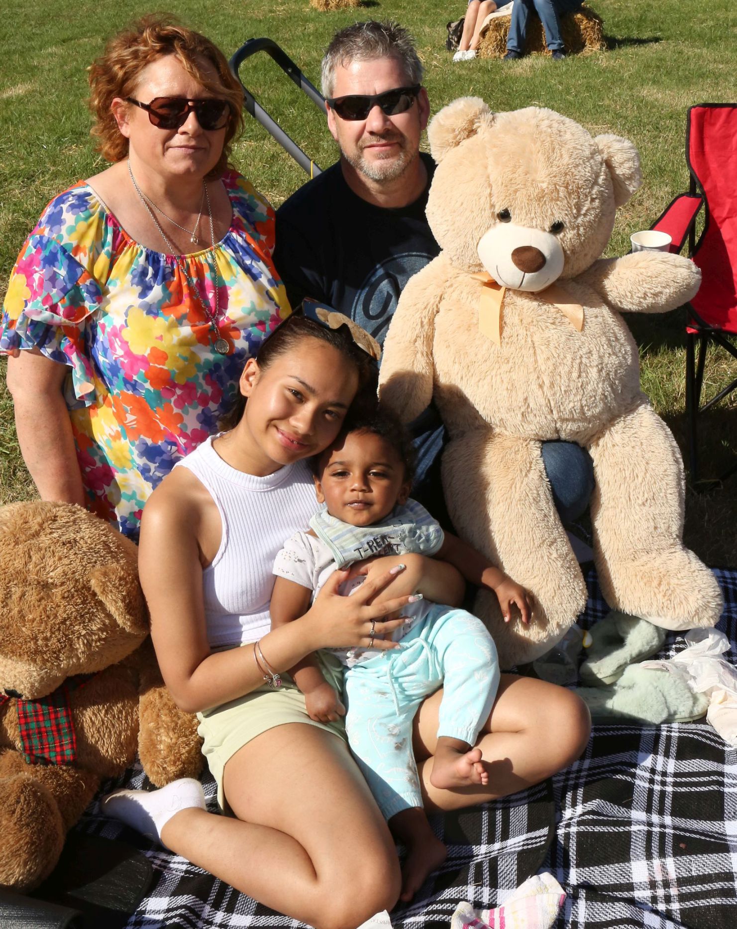 At the Teddy Bear's Picnic and Music Event at The Heath House in aid of Laois Offaly Families for Autism and Ukranian Refugees, were: Ann and Fergal Carroll, Ramanee and Zaire Greed. Photo: Michael Scully.