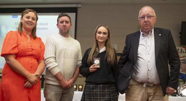 The Eileen Loughnane Award for Senior Home Economics Winner Eve Doyle is presented by Mary Rose, Liam and Gerry Loughnane