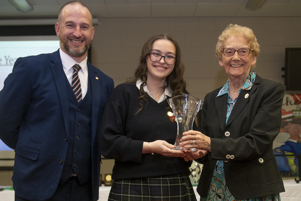 Scoil Chriost Ri Student of the Year Award went to Shauna Traynor here pictured receiving her Award from Sister Evelyn and Principal Sean Smyth. Photo Denis Byrne