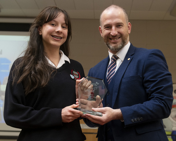 The Student Enterprise All-Ireland Final Aine Barrett receving her award from Principal Sean Smyth