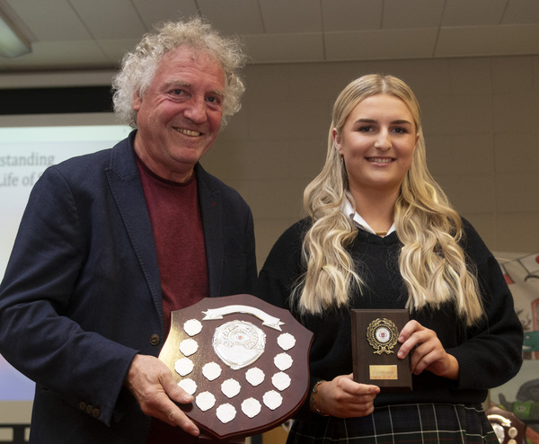 The Pat Critchley Award for Outstanding Contribution to the Sporting Life of Scoil Chriost Ri was Teagan O'Reilly being presented with her awards by Pat Critchley Photo Denis Byrne