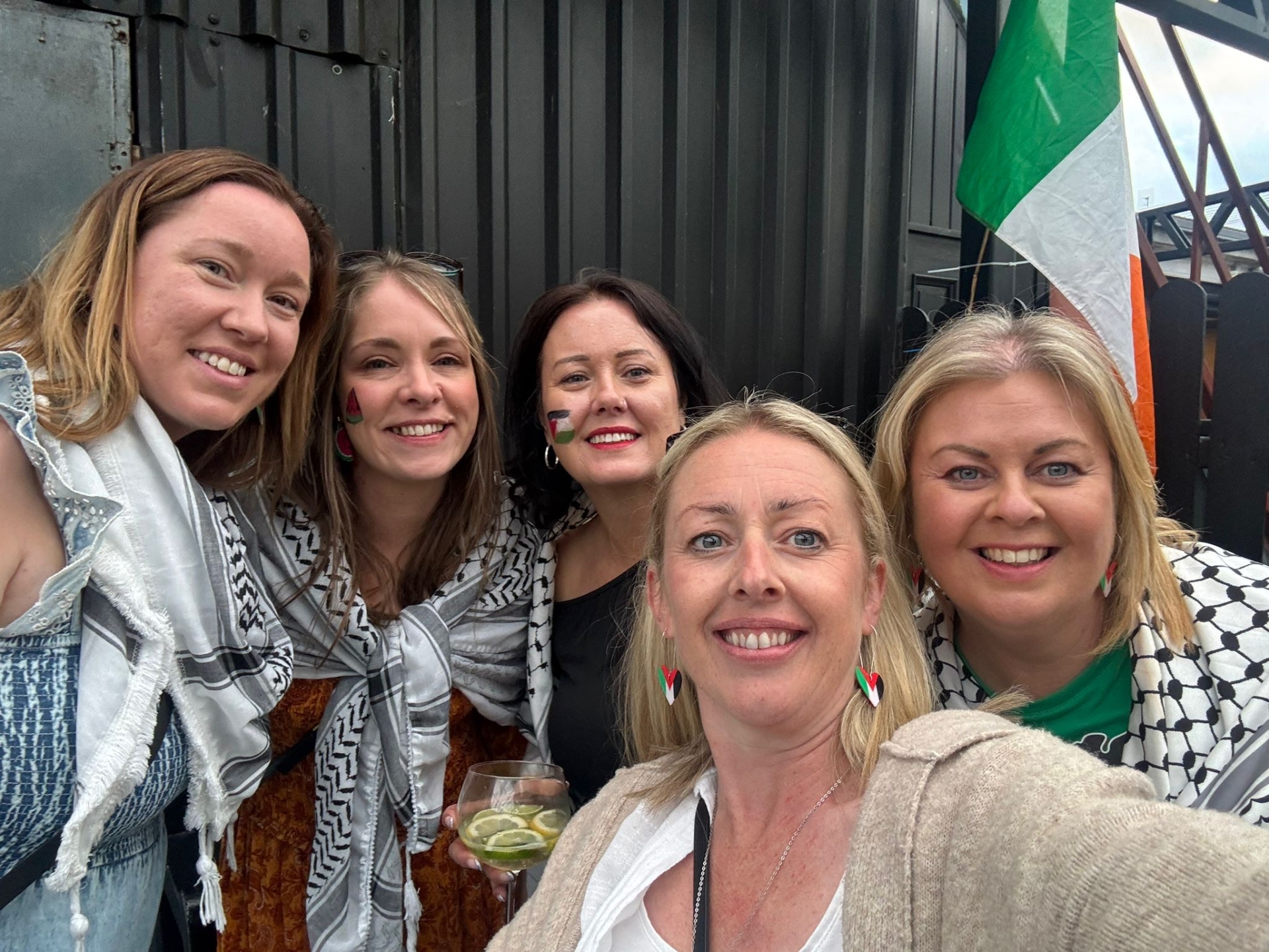 Electrix, and DJ Peter McEvoy. The outdoor pub venue was transformed into a vibrant, family-friendly space, thanks to face painting by LOL Face Painting, and a balloon display by Ní Darach Design, adding to a display of Palestinian flags and banners by Laois Ireland Palestine Solidarity Campaign (IPSC).
