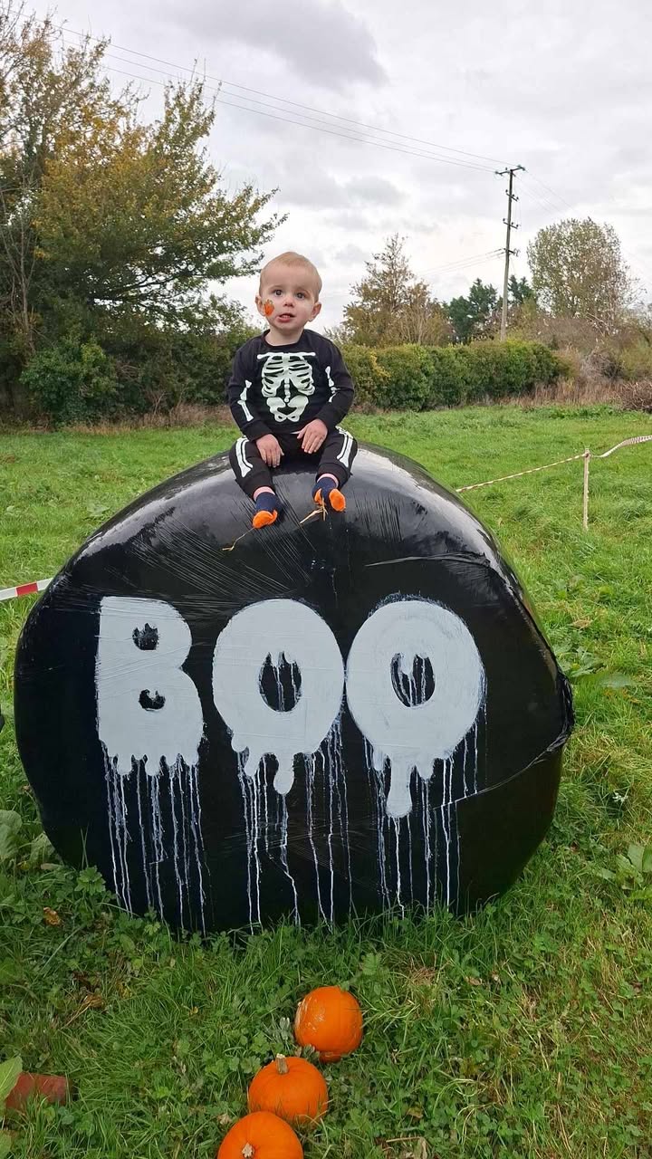 Pictured: Kayden makes a frightfully cute skeleton this Halloween!