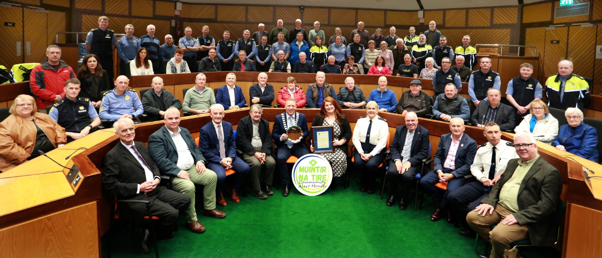 Also present were Sean Fleming TD, the Council’s Director of Services Donal Brennan, Senior Executive Officer Pamela Tynan, Paula Hillman, Assistant Commissioner - Eastern Region, Superintendent Brian Farrell and other Gardaí as well as Community Alert Groups in Laois.