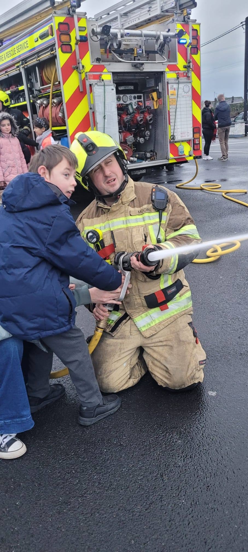 "From junior infants all the way up to sixth class, the children got to see what’s involved in being a firefighter, explore all the equipment they brought with them, and even take turns using the fire hose! The excitement was off the charts," they said.