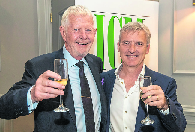 ICM Computer Systems Ltd CEO Ray Lawlor with Pearse McNicholl at Pearse's retirement function in Portlaoise. (Photo by Alf Harvey.)