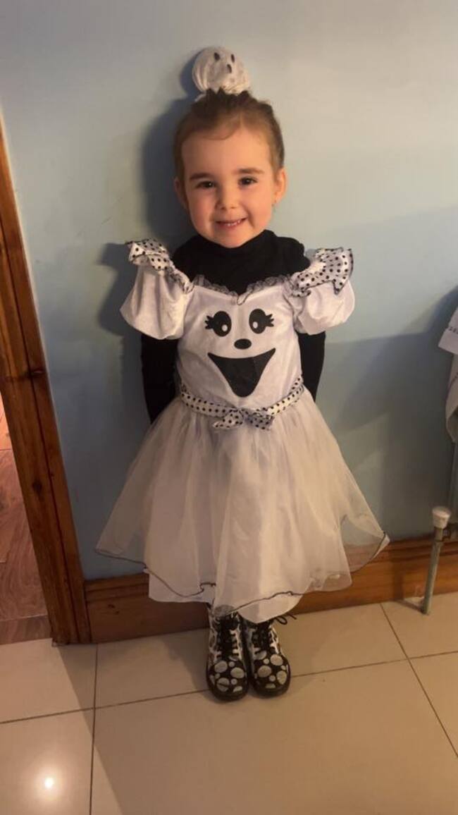 Little Emma O'Shaughnessy all dressed up for Halloween.
