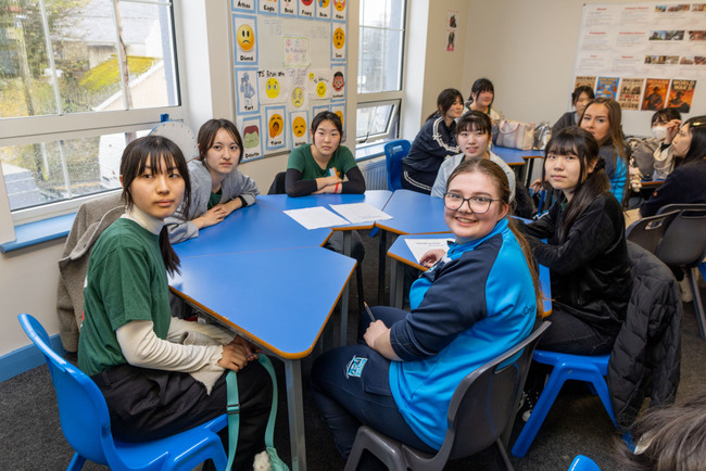 Students and teachers from Kinjo Gakuin High School in Nagoya, Japan learning Irish at Dunamase College.