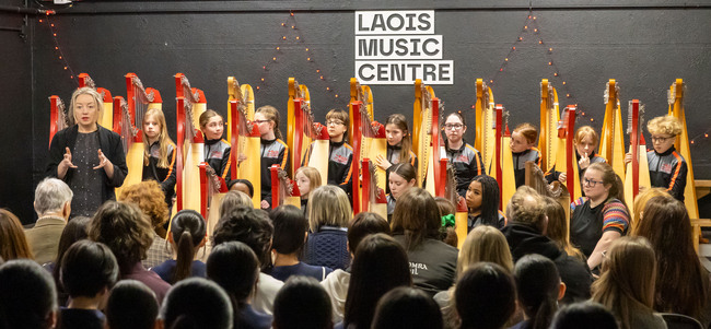 Rosa Flannery from Music Generation Laois opening for the harp concert by Music Generation Laois and Kinjo Gakuin High School at the Laois Music Centre.