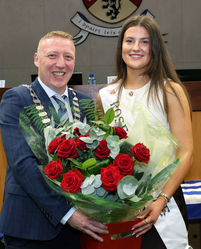 Cllr. Barry Walsh presents a bouquet of roses to Katelyn.