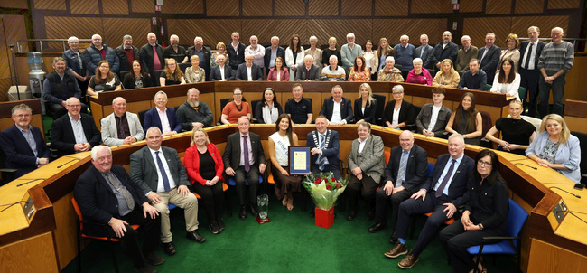 Rose of Tralee, Katelyn with Cathaoirleach Barry Walsh, elected members, Laois County Council officials, family and friends at the Civic Reception.