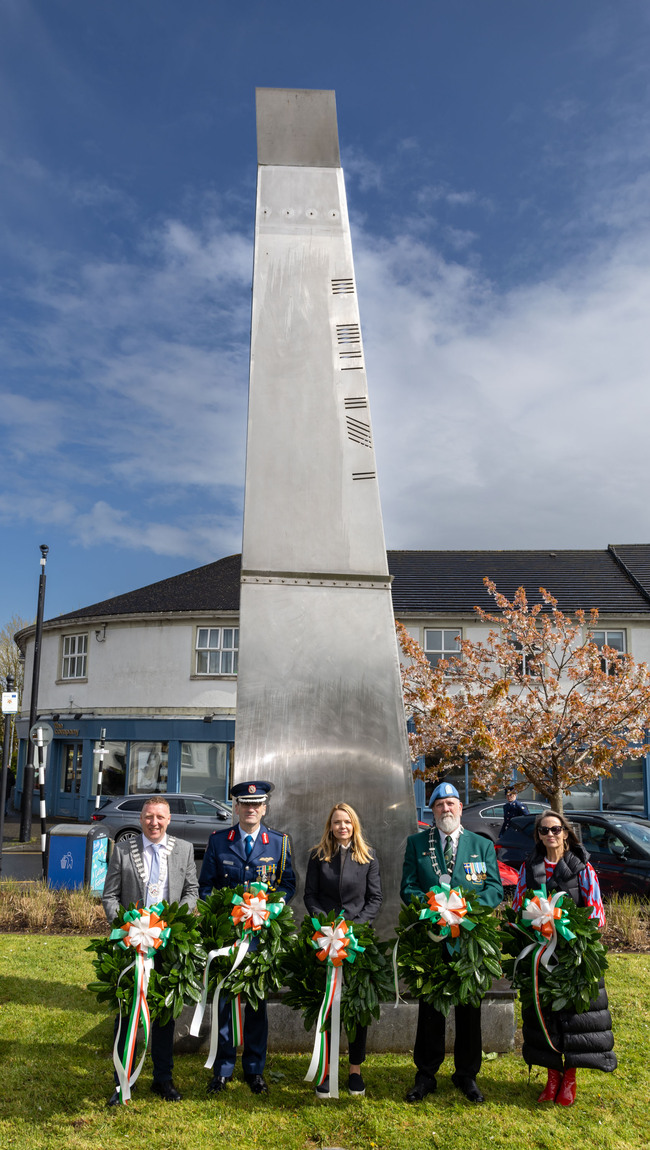Laying wreaths, Cathaoirleach Barry Walsh, Brigadier General Rory O’Connor, Louise Fennelly from the Fitzmaurice Society, Tom Mooney, Post 27 UN Veterans, and Sinead Holland of Laois Libraries.