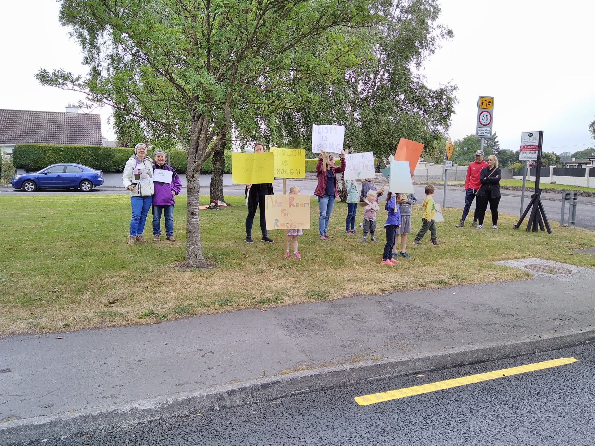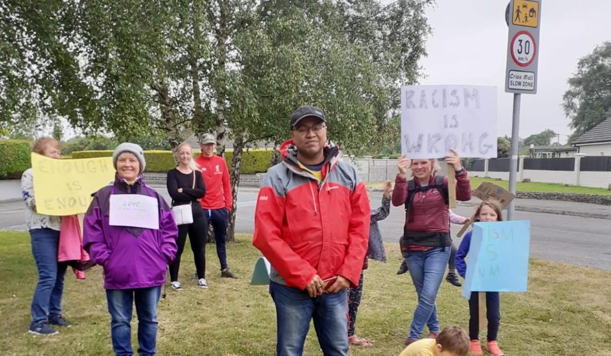 About two dozen children and adults gathered on the Laois Offaly border in Portarlington at the weekend to mount a Black Lives Matter protest in solidarity with those around the world seeking equality for people of colour in the wake of the death of George Floyd in the USA.