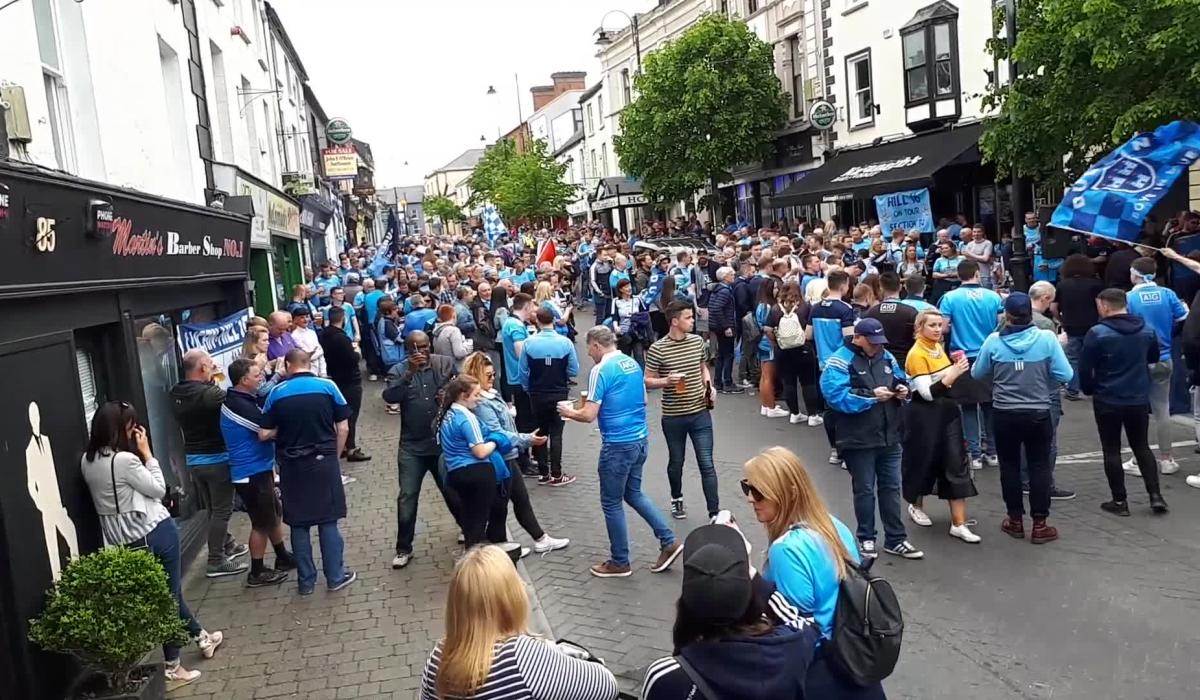 Portlaoise was turned blue on Saturday by Dublin GAA fans who brought Hill 16 on tour in full voice as the capital county embarks on its historic drive for five Sam Maguires in-a-row.