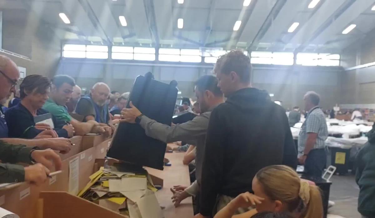 Count staff have opened the boxes for the separation of votes in the local and European elections at the Scoil Christ Rí/ CBS Count Centre in Portlaoise.
