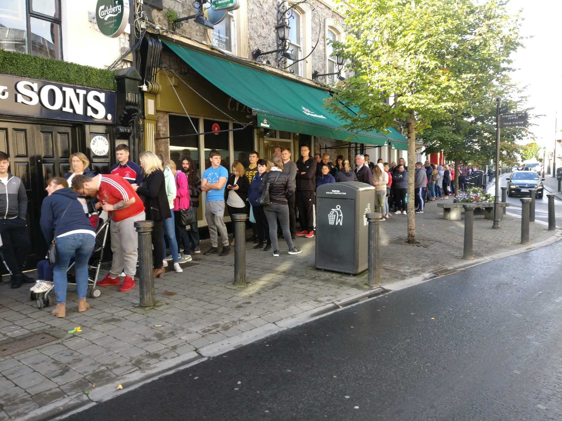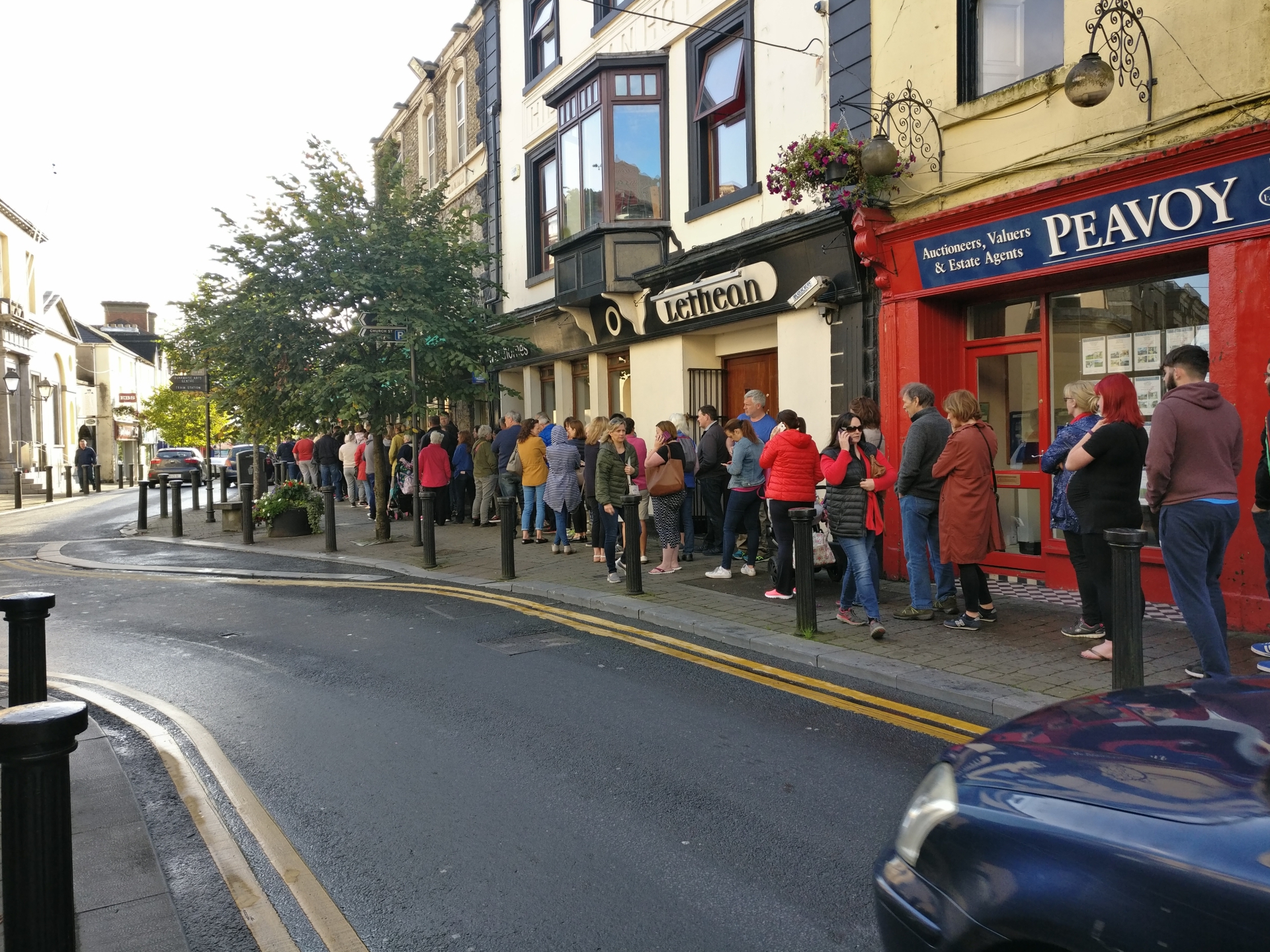 The sun shone on the queue which started at Colgan's on Main Street and went all the way to the corner of Bull Lane.