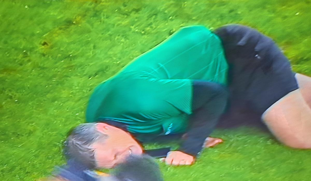 The Laois man was flattened as players from Kilmacud Crokes and The Downs were going for a ball in the second half of the final. An interested onlooker was fellow Laois man Lar Wall who is the manager of The Downs from Westmeath.