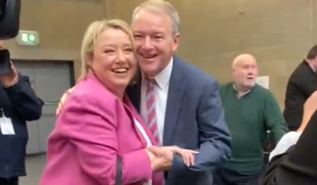 Brian Stanley and his wife Caroline Dwane Stanley have just arrived at the count centre to cheers and applause from their supporters.