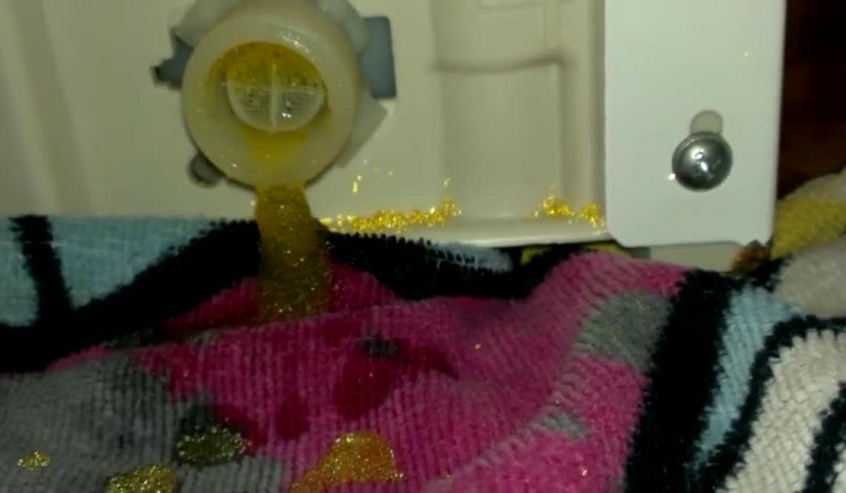 The beads settle in the bottom of a glass when a mains tap is turned on. The washing machine or dish washer is becoming clogged up. When the family removes the water connection from the back of the machine the congealed beds ooze out. Only the filters are preventing the substance entering the machine.