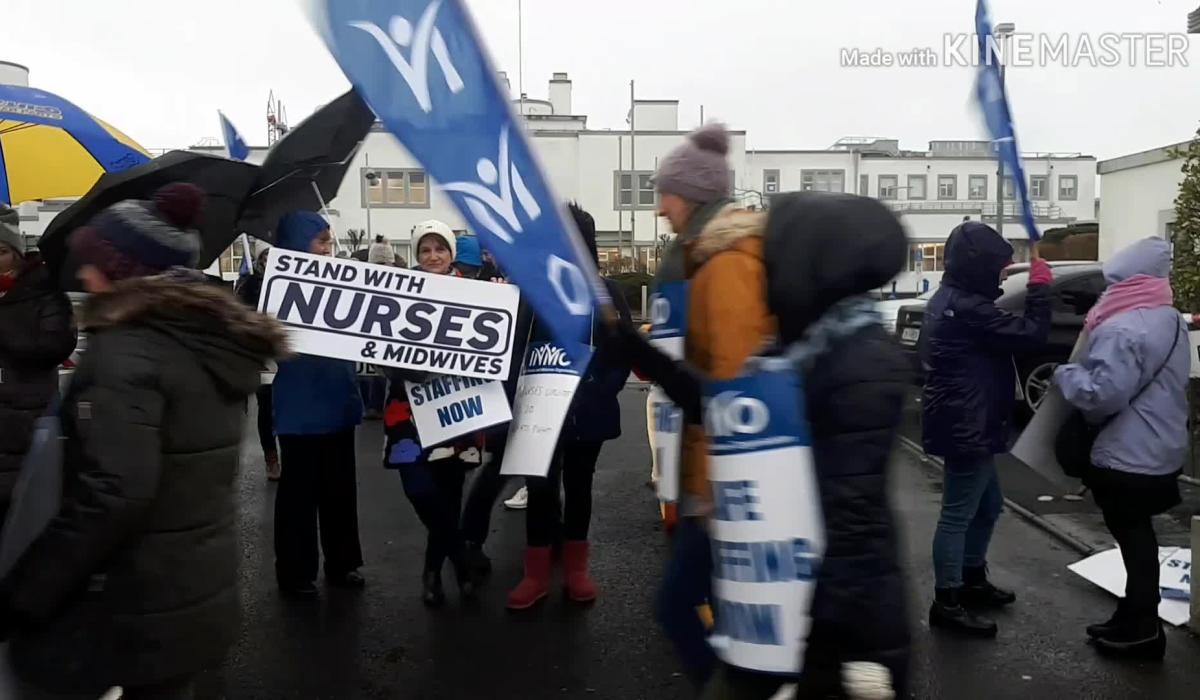 Laois nurses are on the picket line in Portlaoise for day two of escalating strike action by the Irish Nurses & Midwives Organisation.