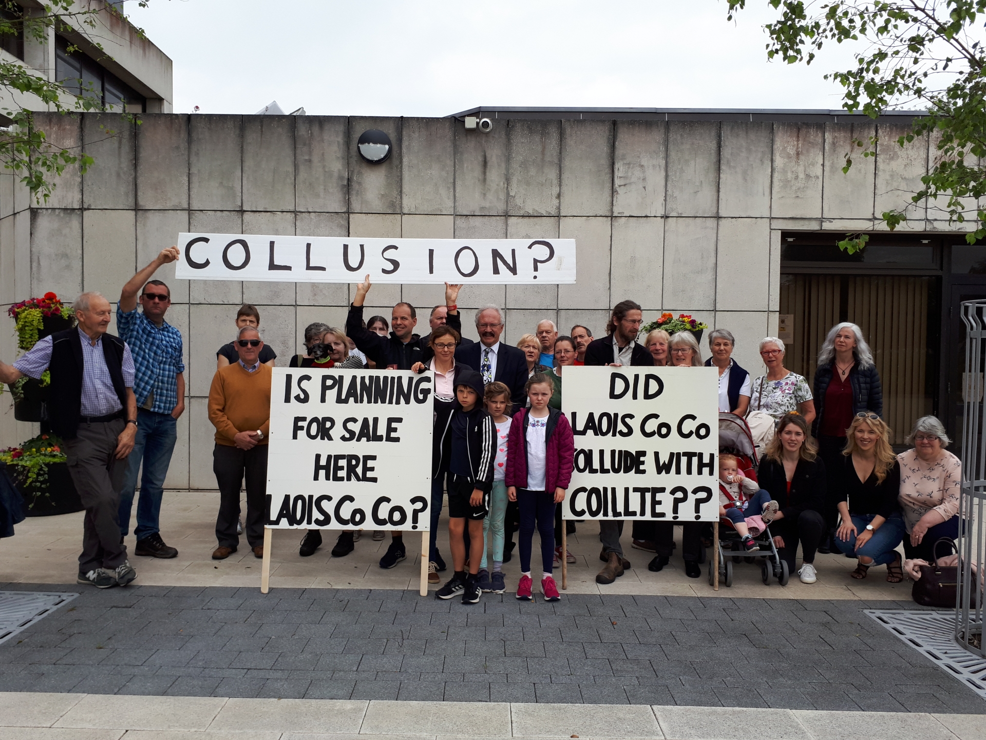 A Laois anti-wind turbine group staged a protest outside Laois County Hall in Portlaoise today asking the council 'is planning for sale?' over issues they believe exist with a Coillte wind farm planning application and Laois County Council.