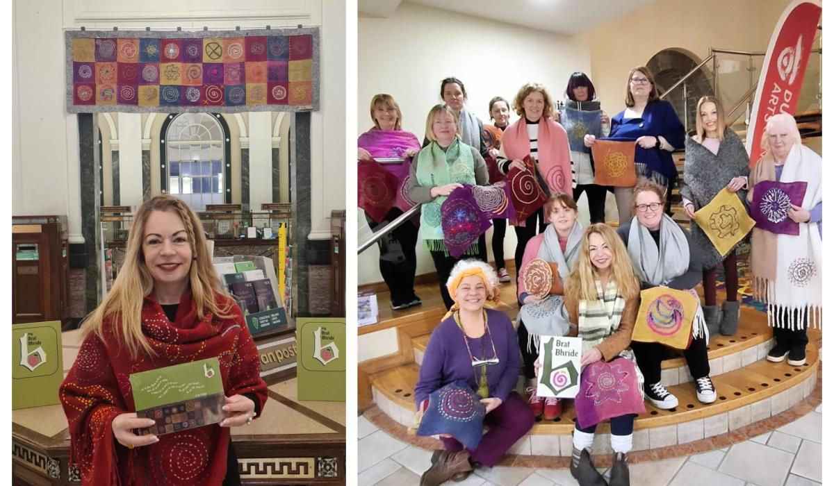 Pictured: The Laois women who made the stunning Brat Bhríde with Portarlington's Rita O'Loughlin