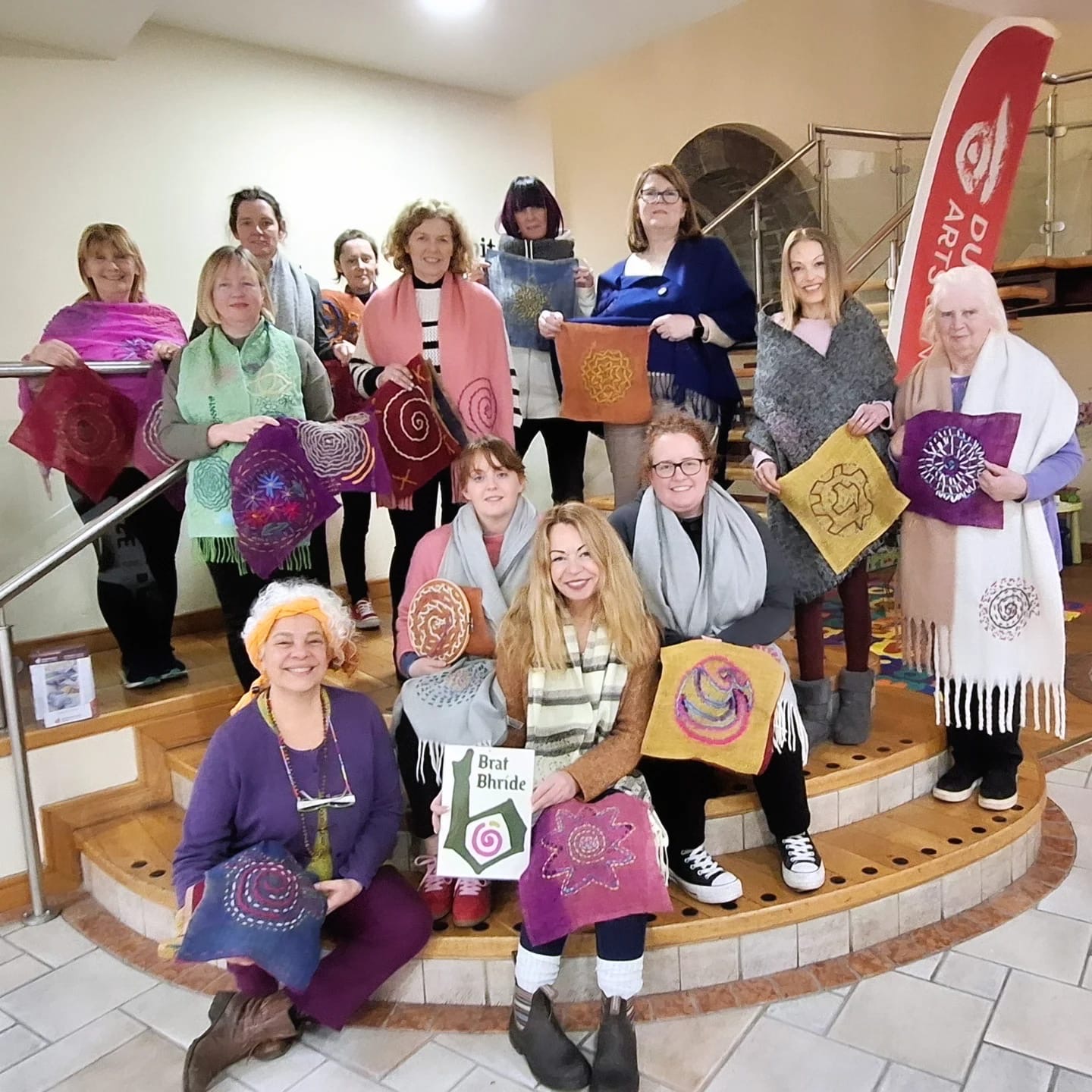 Rita O'Loughlin, founder of 'My Brat Bhríde', worked with a group of Portlaoise women to make a large 32 square brat bhríde. An Post have chosen to display this stunning creation in the GPO, along with commemorative post cards of the piece.